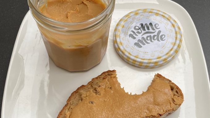 - doe een theelepel olie in de blender en daarna de pinda’s