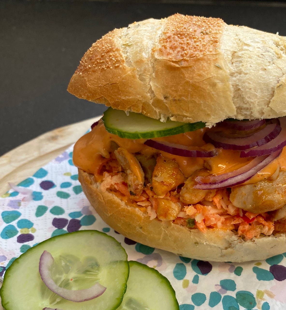 - voeg dan het gehackt toe en de shoarmakruiden en vermeng, laat een paar minuten zachtjes warm worden