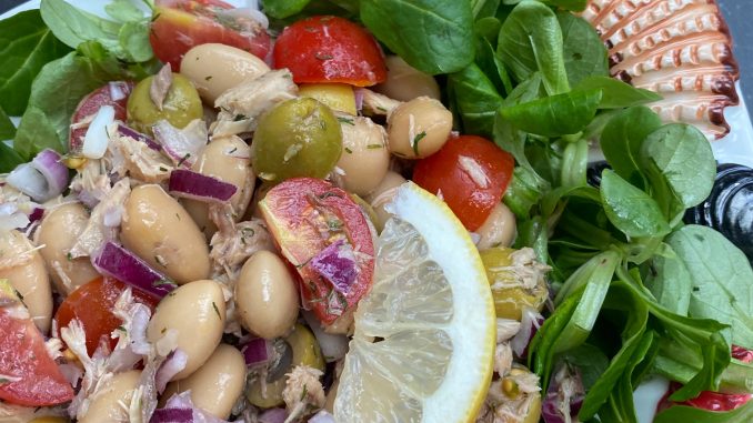 Frisse witte bonensalade met makreel